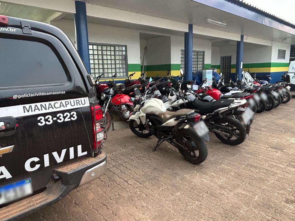 Em ação conjunta, policiais civis da Delegacia Especializada em Roubos e Furtos de Veículos (DERFV) e da Delegacia Interativa de Polícia (DIP) de Manacapuru (a 68 quilômetros de Manaus), deflagraram ação policial que resultou na recuperação de cerca de 11 motocicletas adulteradas e oriundas de roubos e furtos. A ação ocorreu na quinta-feira (21/09), em regiões distintas do município.