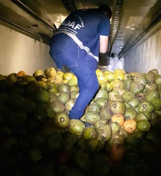 Uma carga de aproximadamente três toneladas de coco in natura e outra com 159 quilos de pimenta foram apreendidas na quinta-feira (1º), por fiscais da Agência de Defesa Agropecuária e Florestal do Amazonas (Adaf) que atuam na Barreira de Vigilância Agropecuária (BVA), localizada na vila de Jundiá, em Roraima. As cargas, provenientes de Rorainópolis (RR), traziam para Manaus espécies que oferecem risco fitossanitário, e que estão com trânsito restrito.