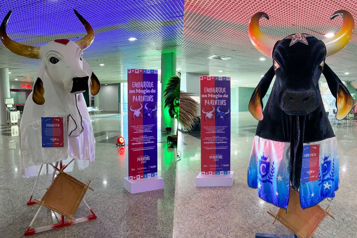 Expostas no saguão de desembarque do aeroporto, as peças têm o objetivo de promover o turismo e chamar a atenção dos passageiros que desembarcam na capital amazonense, muitos deles com destino a Parintins, onde acontecerá o 55º Festival Folclórico, de sexta-feira a domingo (24 a 26/06).