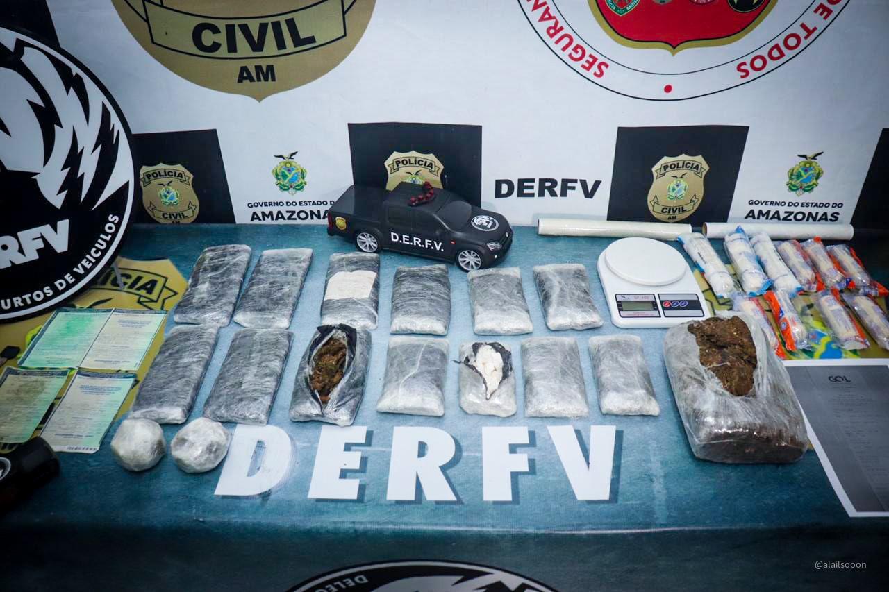 A Polícia Civil do Amazonas (PC-AM), por meio da Delegacia Especializada em Roubos e Furtos de Veículos (Derfv), deflagrou ação policial nesta quarta e quinta-feira (25 e 26), que resultou nas prisões de Andrey do Nascimento Andrade, 21, e Henrique Teixeira Pedrosa, 23, apontados como integrantes de uma organização criminosa responsável por receptar e trocar veículos clonados por drogas e, posteriormente, enviar o material entorpecente para o estado da Bahia (BA).