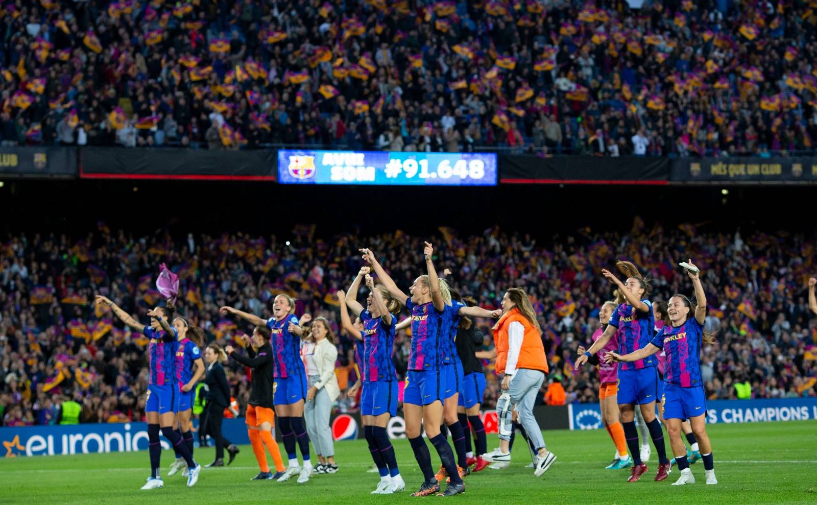A equipe do Barcelona (Espanha) fez história nesta sexta-feira (22). A equipe da Catalunha goleou o Wolfsburg (Alemanha) por 5 a 1 no estádio do Camp Nou pelo jogo de ida das semifinais da versão feminina da Liga dos Campeões diante de 91.648 pessoas, a maior audiência na história de um jogo de futebol feminino.