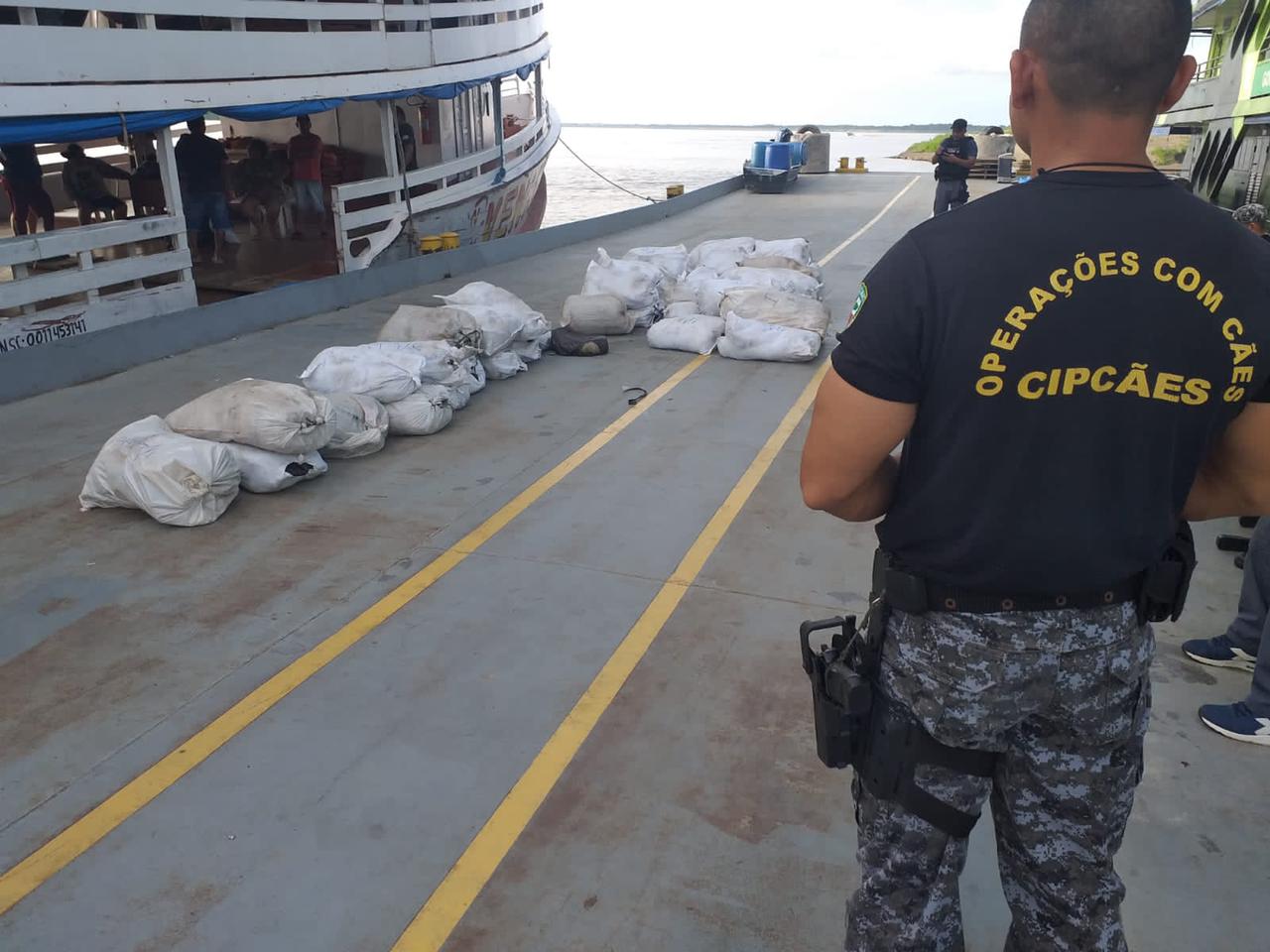 Após flagrar o material ilegal escondido no local, embalado em sacas de fibra, os policiais prenderam o homem responsável pelo recebimento e registro de encomendas da embarcação.