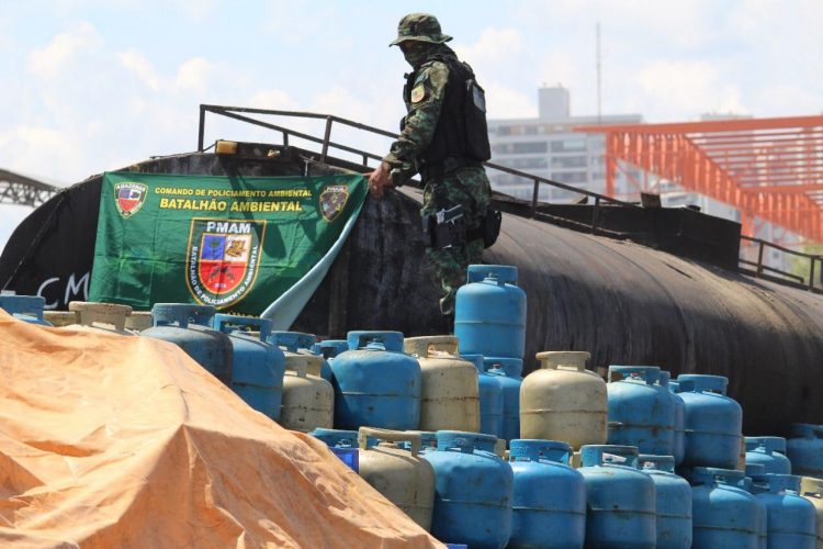 Durante patrulhamento fluvial, policiais militares do Batalhão de Policiamento Ambiental (BPAmb), da Polícia Militar do Amazonas (PMAM), apreenderam mais de cinco mil botijas de gás de cozinha sem documentação. A carga foi localizada em um porto, nas proximidades da Ponte Rio Negro, na zona oeste de Manaus, por volta das 12h, desta segunda-feira (09/08). Além das botijas, 84 mil litros de piche também foram apreendidos. De acordo com os policiais, os ilícitos estão avaliados em mais de R$ 1 milhão.