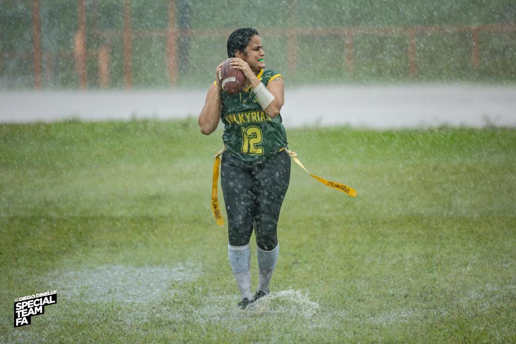 Há mais ou menos três anos na prática do Flag, a professora de inglês e estudante de Odontologia, Krícia Solart, 27, é lançadora da equipe Valkyrias e contou sobre a felicidade de poder participar da expansão do esporte no estado.