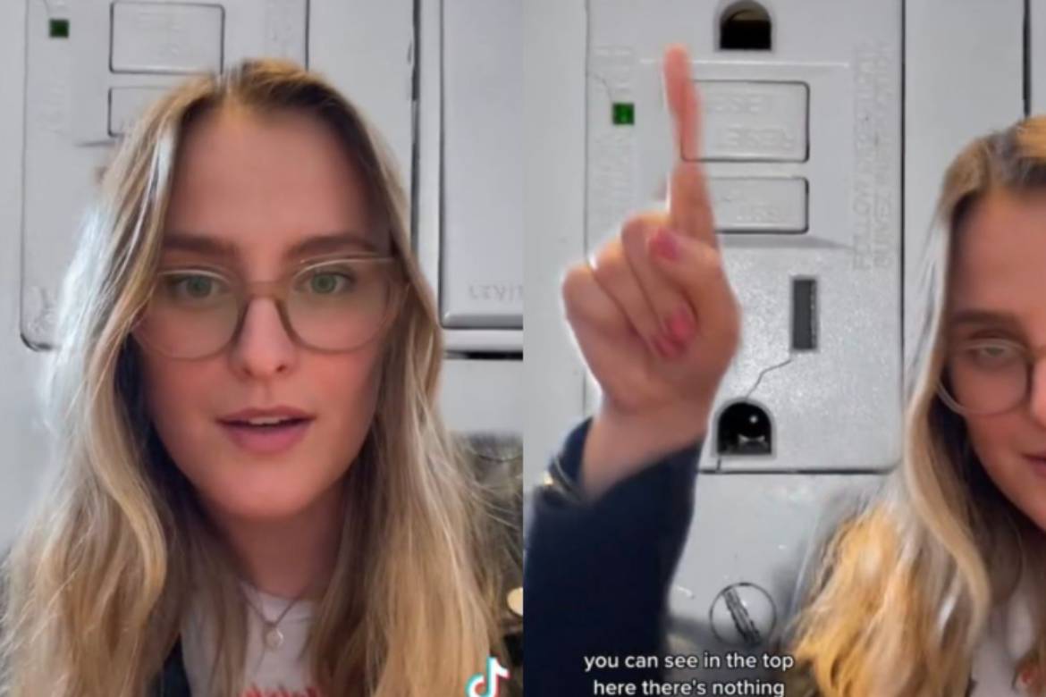 Mostrando a foto do plugue no banheiro, a jovem explica: “Você pode ver aqui em cima, não há nada, parece totalmente normal. E então o de baixo, olhe para aquela câmera. Nós surtamos e chamamos a polícia”.