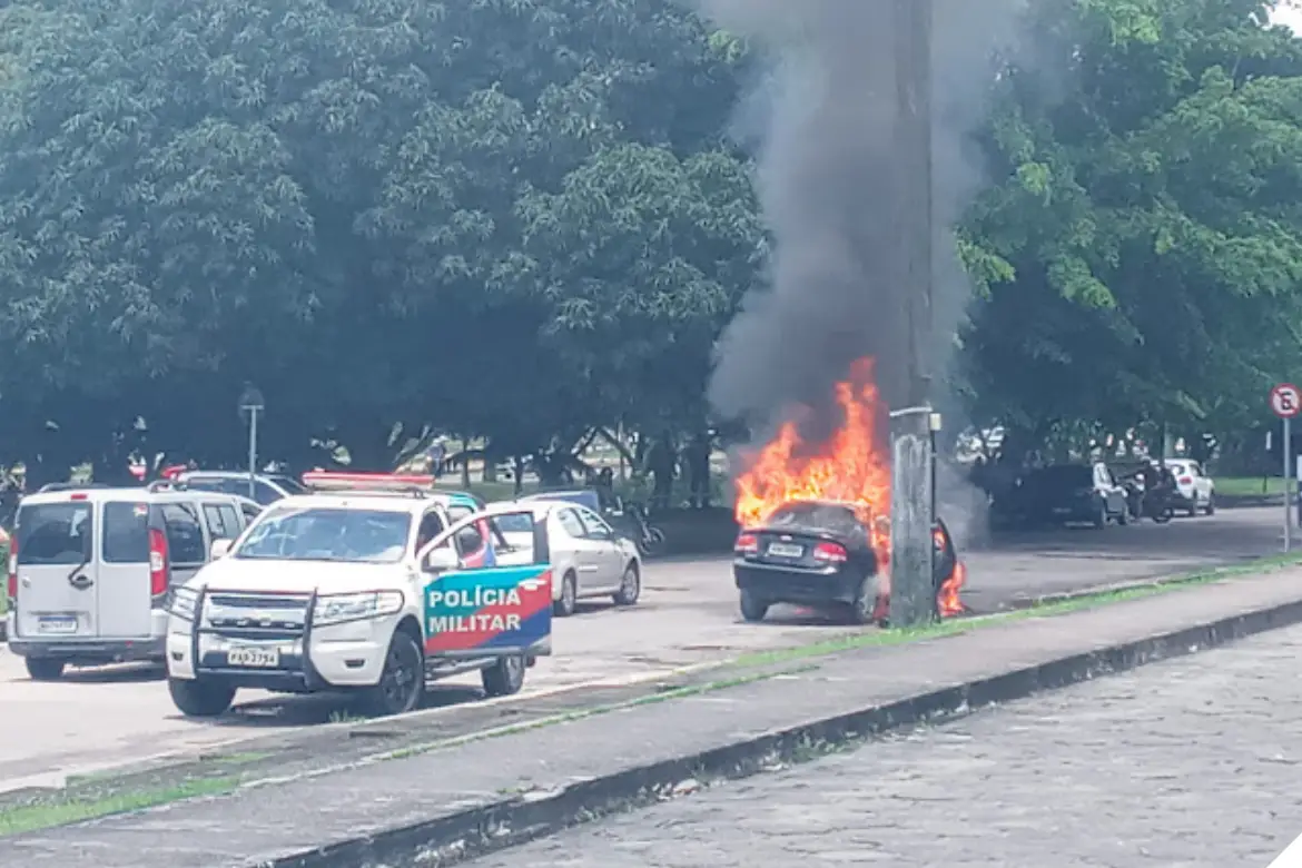 Manaus (AM) – Um carro de passeio ficou totalmente destruído após pegar fogo no final da manhã desta quarta-feira (23), dentro da Universidade Nilton Lins, localizada no Parque das Laranjeiras, zona Centro-Sul de Manaus.