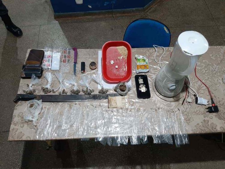 A equipe se dirigiu ao local indicado, onde deteve um homem de 49 anos e um jovem de 18 anos em posse de 29 trouxinhas de substância análoga a pasta base de cocaína e mais 55 trouxinhas e uma porção de maconha do tipo skunk, além de materiais para embalo de entorpecentes, espalhados por toda a residência.