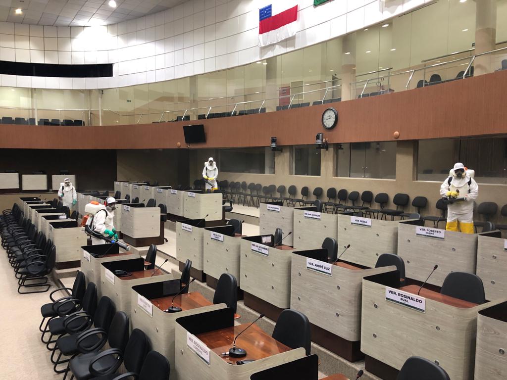 A sanitização é um conjunto de procedimentos higiênico-sanitários que visa garantir a limpeza de superfícies, equipamentos e ambientes, além de evitar a recontaminação de ambientes, produtos e superfícies, e que, segundo o presidente da CMM, Joelson Silva (Patriota), é de suma importância para que os vereadores e servidores retornem com segurança.