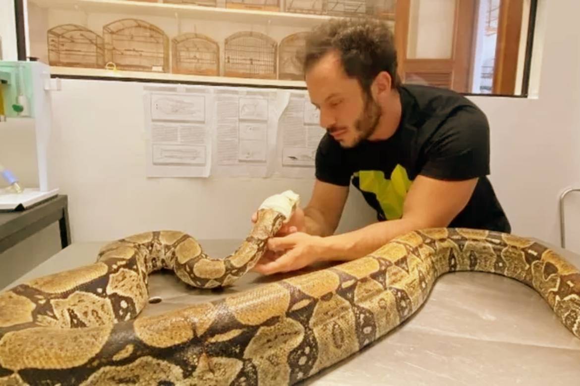Uma jiboia de 2,4 metros que foi brutalmente agredida com pauladas na cabeça vem se recuperando com sucesso e virou símbolo contra a estigmatização das serpentes como animais perigosos.
