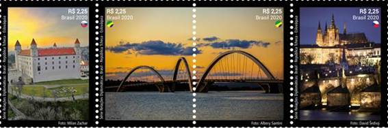 Para representar as relações diplomáticas do Brasil com a Eslováquia e a República Tcheca, foi escolhido um formato de emissão postal diferente do habitual. Por meio de dois selos e de um se-tenant de dois selos, conseguimos materializar o objetivo da emissão: demonstrar a união entre os três países, com as imagens dos castelos, que hoje são residências presidenciais, “ligados” pela ponte brasileira, que leva o nome do ex-presidente de ascendência tcheca.