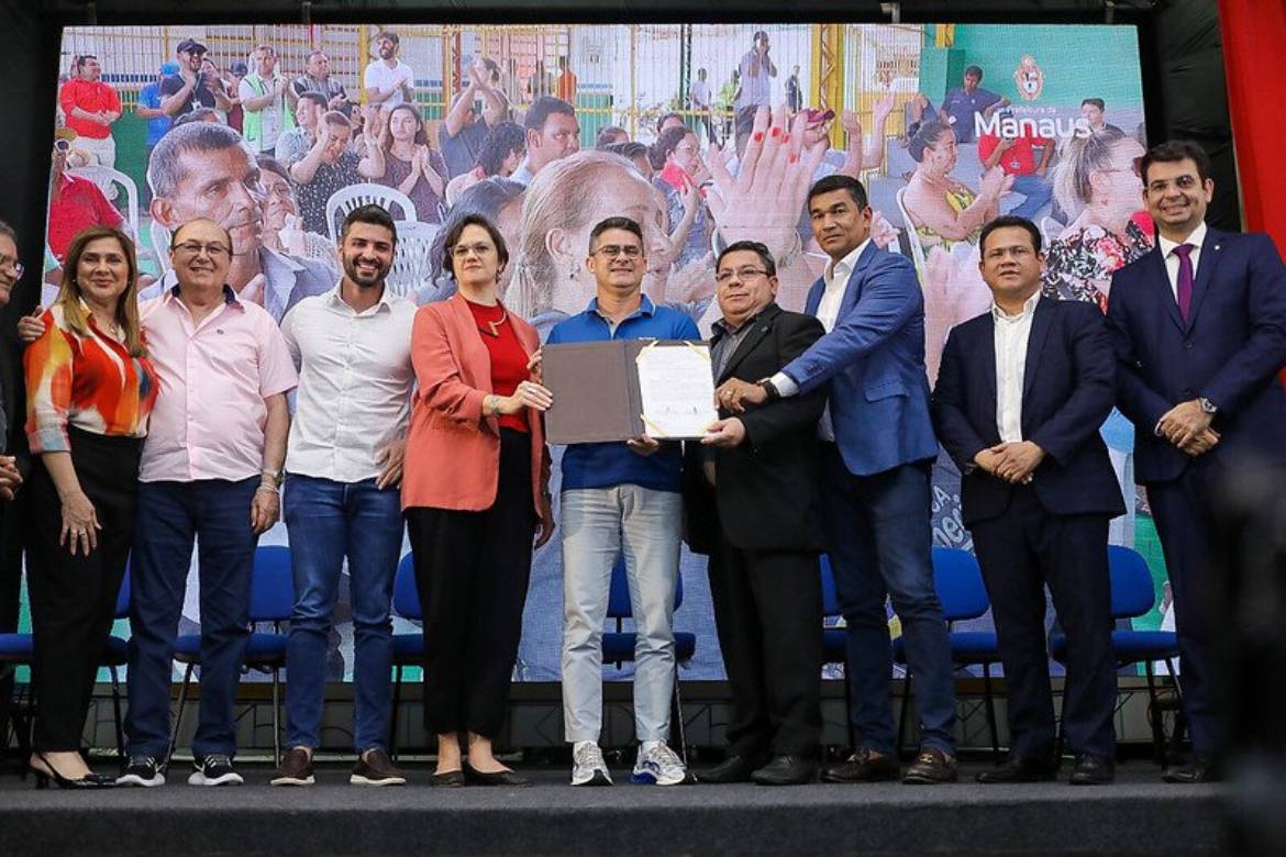 O prefeito de Manaus, David Almeida, em parceria com a secretária-adjunta de Gestão do Patrimônio da União, Caroline Gabas Stuchi, e o superintendente do Patrimônio da União no Amazonas (SUP), Mauro Leno Rodrigues de Souza, assinou o termo de cooperação técnica que garante a regularização fundiária do bairro Colônia Antônio Aleixo, localizado na zona Leste, na tarde desta quarta-feira, 14/6, beneficiando mais de 900 famílias.