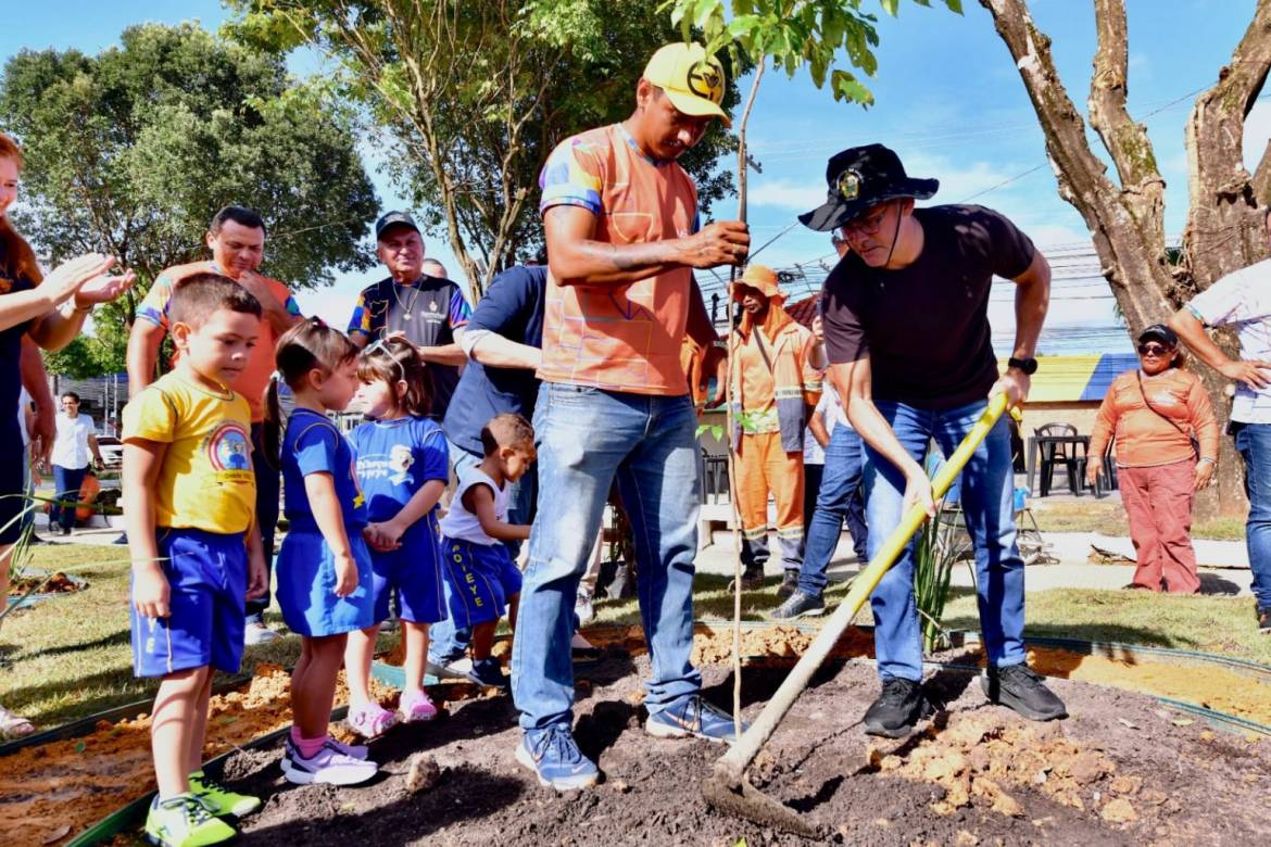 O prefeito de Manaus, David Almeida, participou de uma ação de arborização no bairro Dom Pedro, região central da capital. A iniciativa foi realizada pela Secretaria Municipal de Limpeza Urbana (Semulsp), como parte dos esforços da atual gestão para promover a conscientização ambiental. Acompanhado pelos alunos do Jardim de Infância Palhoça do Popeye, o prefeito destacou a importância de incentivar as novas gerações a cuidarem do meio ambiente.