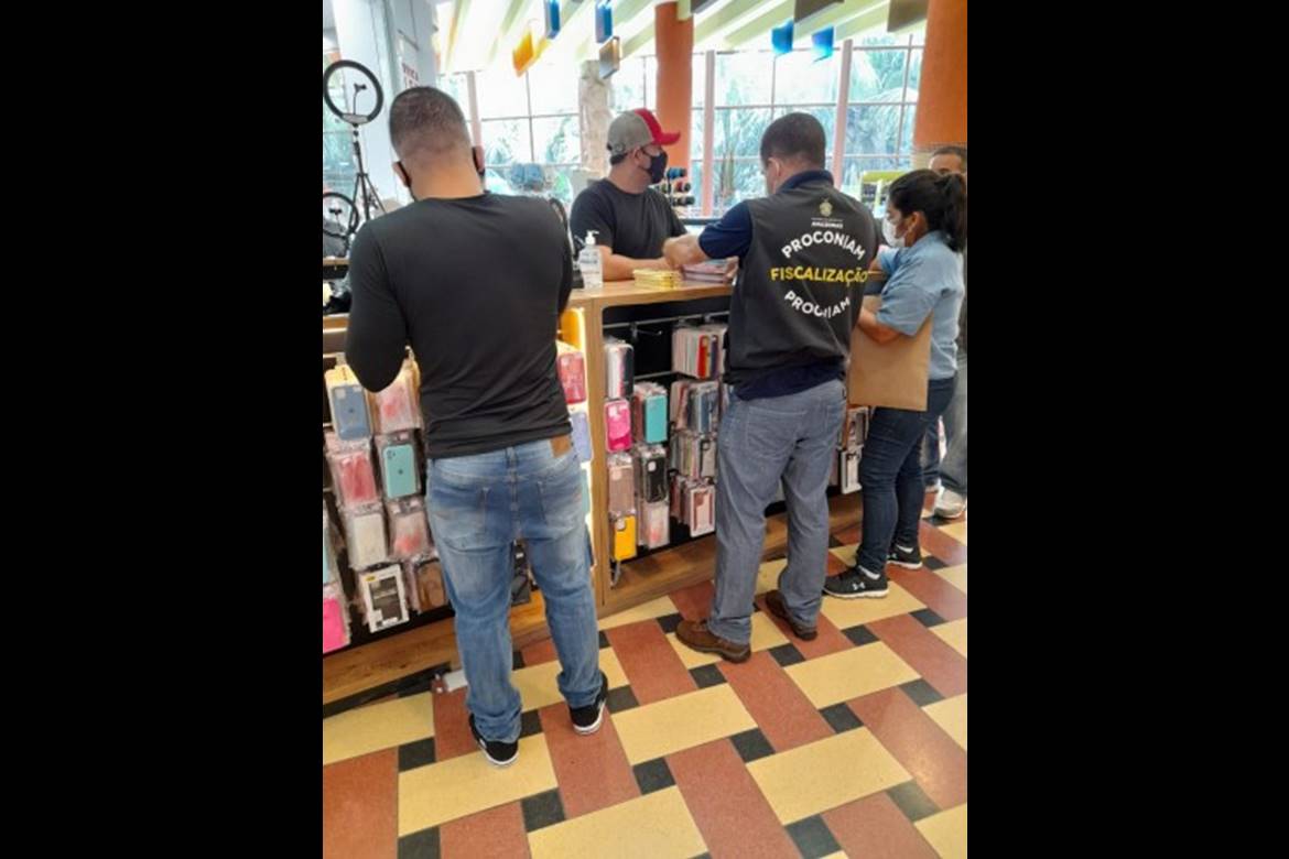 “Nós fiscalizamos quatro alvos dentro do shopping e encontramos 666 capas de celulares, 68 cabos e diversos carregadores de celulares. Todos os itens eram falsificados”, detalhou a autoridade policial.