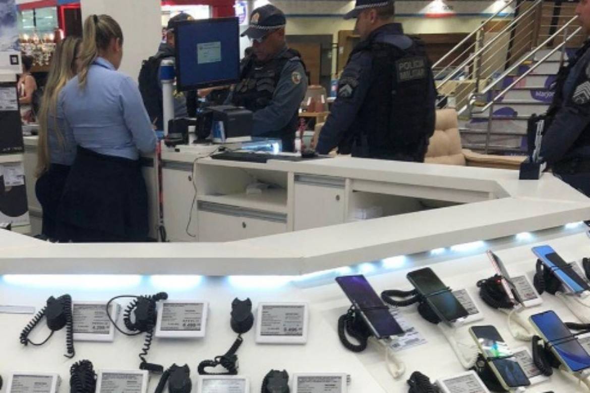 “Os dois adolescentes invadiram a loja, portando arma de fogo, renderam os funcionários e clientes, mediante violência e grave ameaça, e subtraíram vários smartphones, que estavam em exposição no balcão do estabelecimento. O terceiro indivíduo identificado como Leandro Gabriel deu apoio à fuga em uma motocicleta”, explicou o delegado.