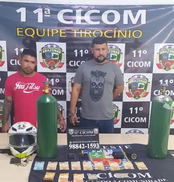 Dois homens de identidade não revelada foram presos na tarde desta quarta-feira (27), na Rua São Francisco, bairro Coroado, por venderem dois extintores de incêndio como cilindros de oxigênio.