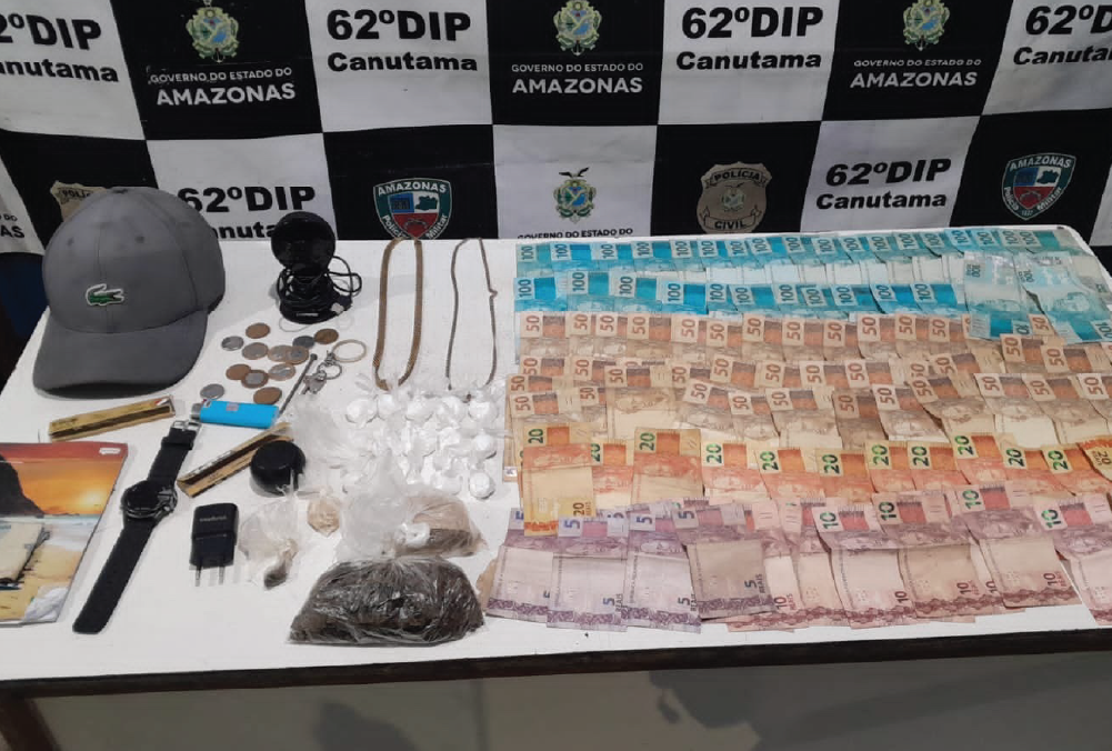 A Polícia Civil do Amazonas (PC-AM), por meio da 62ª Delegacia Interativa de Polícia (DIP) de Canutama (a 619 quilômetros de Manaus), em ação integrada com a Polícia Militar do Amazonas (PMAM) e Guarda Civil Municipal (GCM), prendeu em flagrante, no domingo (22/06), Kelvin Oswaldo Simoza Goitte, 21, e Luiz Henrique Ferreira Miranda da Silva, conhecido como “Monte Orebe”, 19, por tráfico de drogas. As prisões foram efetuadas no Centro do município.
