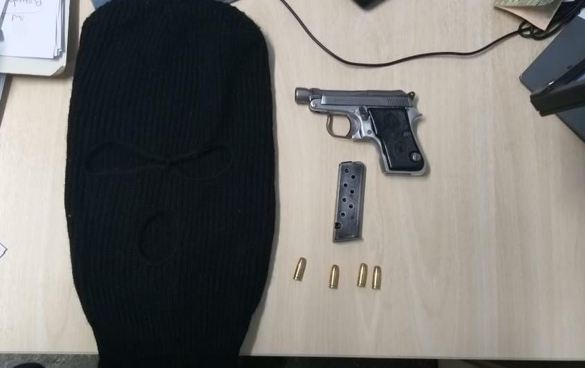 Segundo os policiais, a equipe, que estava em patrulhamento de segurança na área, observou as atitudes suspeitas dos dois jovens enquanto conduziram o carro e efetuou abordagem. Durante revista pessoal nos suspeitos, nada foi encontrado; todavia, em revista no interior do veículo, foram encontradas uma pistola Beretta com quatro munições intactas e uma balaclava, além de peças novas de vestuário.