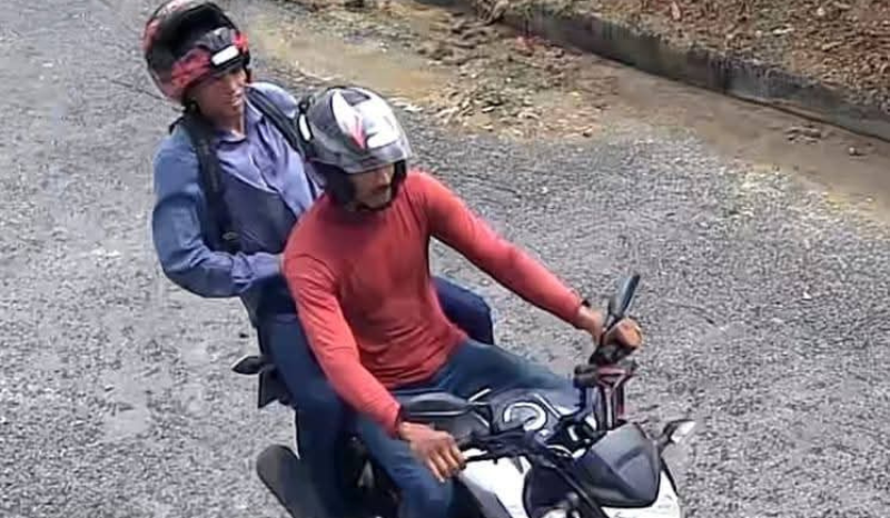 Um dos crimes mostram o momento em que o condutor da moto e seu comparsa abordam uma senhora e uma jovem que caminhavam pela via.