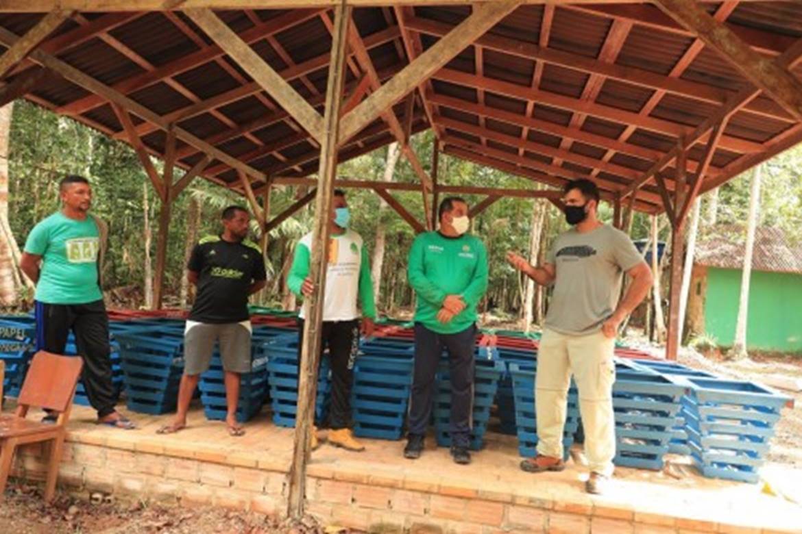 Após a produção, as caixas foram entregues para a Associação de Moradores Agroextrativistas da Reserva de Desenvolvimento Sustentável Uacari (Amaru), que está fazendo a distribuição entre as comunidades.