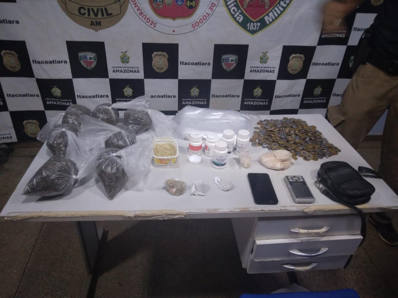 No município de Itacoatiara (a 176 quilômetros de Manaus), policiais civis da Delegacia Interativa de Polícia (DIP), juntamente com policiais militares, apreenderam, na quinta-feira (23/02), substâncias entorpecentes oriundas do tráfico de drogas, balança de precisão e um cofre com dinheiro, em uma residência situada em uma região conhecida como Piçarreira, bairro Prainha.