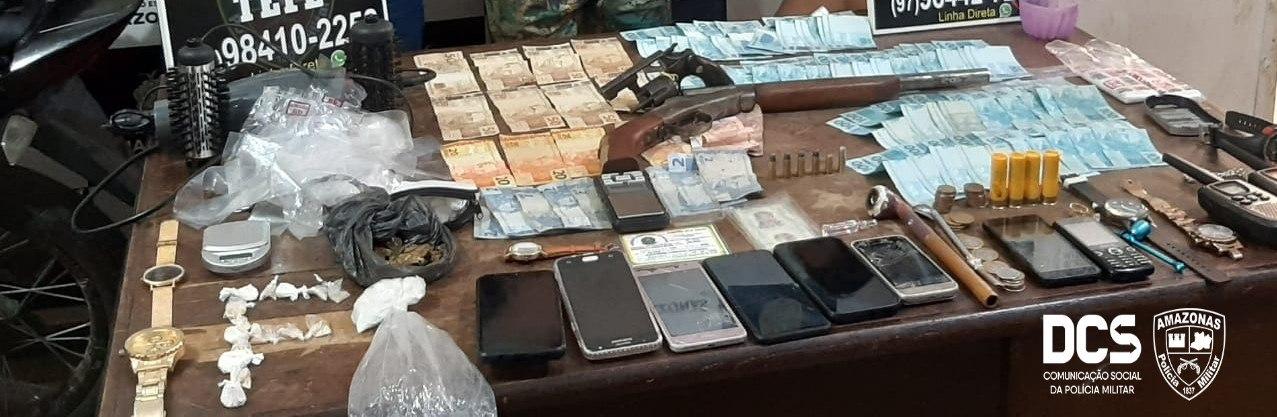 Policiais militares do 3° Batalhão de Polícia Militar (BPM) e da Força Tática, na quinta-feira (29), detiveram três homens, de 27, 30 e 32 anos, com armas, drogas e produtos provenientes de roubo. A ação ocorreu no município de Tefé, distante 523 quilômetros de Manaus.