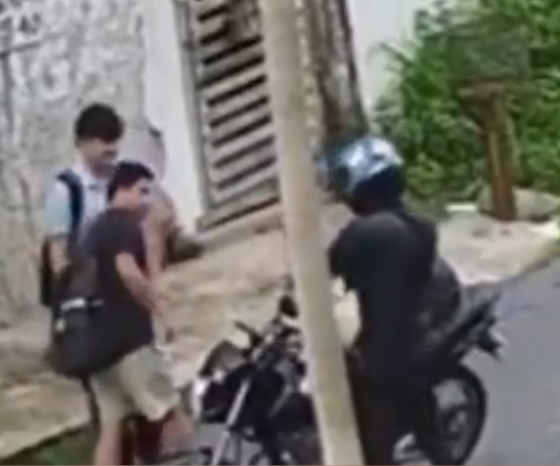 Imagens de câmeras de segurança registraram um assalto contra dois estudantes, na manhã desta sexta-feira (22) na rua 215, no núcleo 16, no bairro Cidade Nova, zona norte de Manaus.