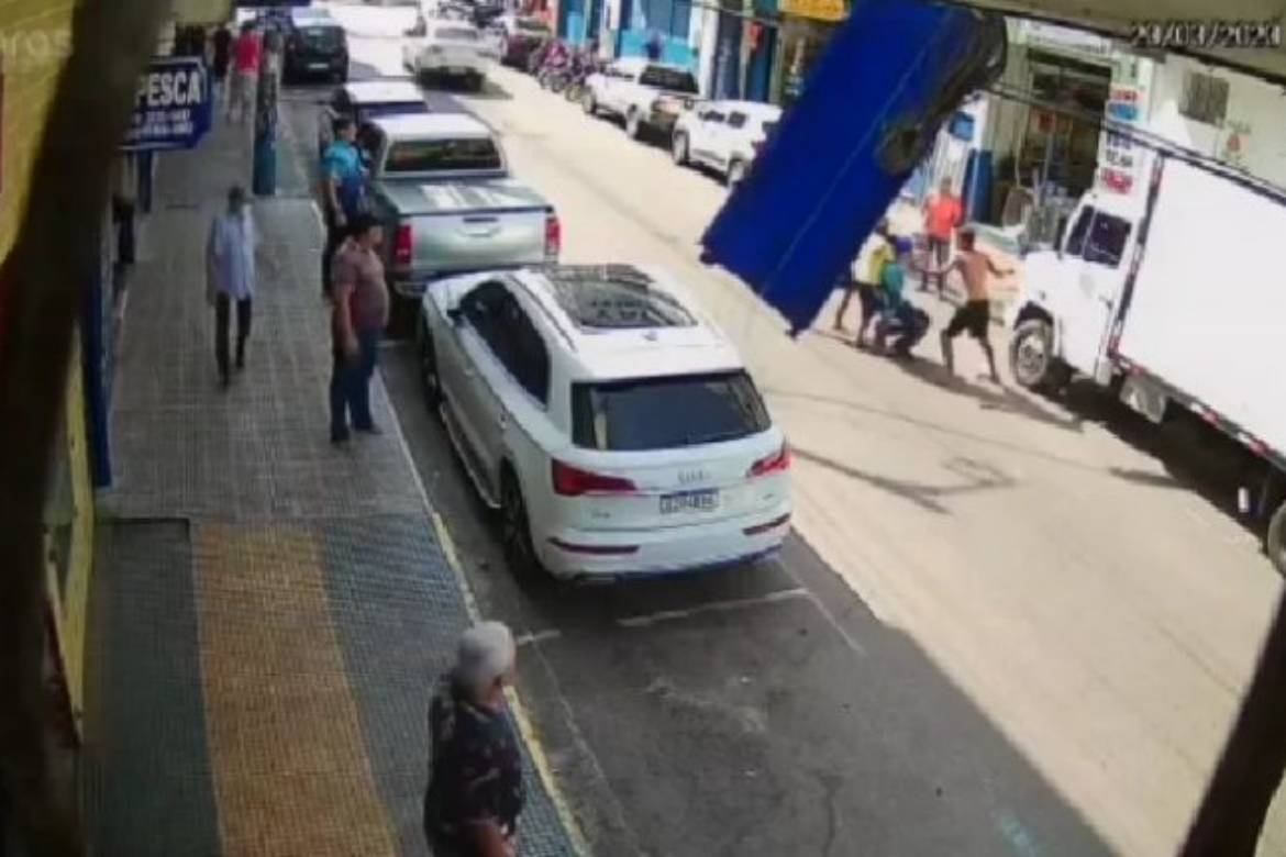 Um fiscal da “Zona Azul” foi agredido por três homens, na rua dos Barés, Centro de Manaus. O caso aconteceu na última quinta-feira (23), mas ganhou repercussão nesta semana após a divulgação das imagens registradas por câmeras de segurança no local.