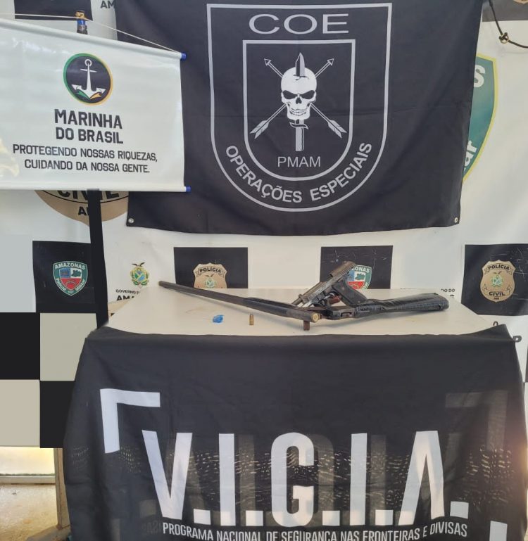 Na tarde deste sábado (16/04), os policiais da Companhia de Operações Especiais (COE), da Polícia Militar do Amazonas (PMAM), com o apoio da Marinha do Brasil, apreenderam duas armas de fogo durante a operação Fronteira Mais Segura, em conjunto com a operação Hórus, deflagrada no município de Japurá (a 744 quilômetros de Manaus).
