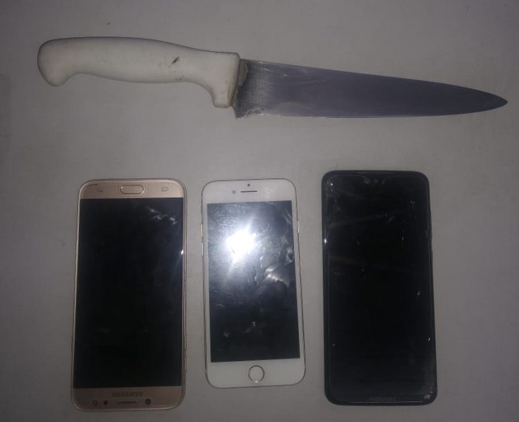 Uma das vítimas conseguiu rastrear o aparelho celular e passou a localização aos policiais. Em ato contínuo, a guarnição se deslocou até a rua Lobo D’Almada, e logo visualizou o suspeito com as mesmas características repassadas pelas vítimas. Foi feita aproximação e abordagem e, durante revista pessoal, os policiais encontraram a faca e três aparelhos celulares das vítimas.