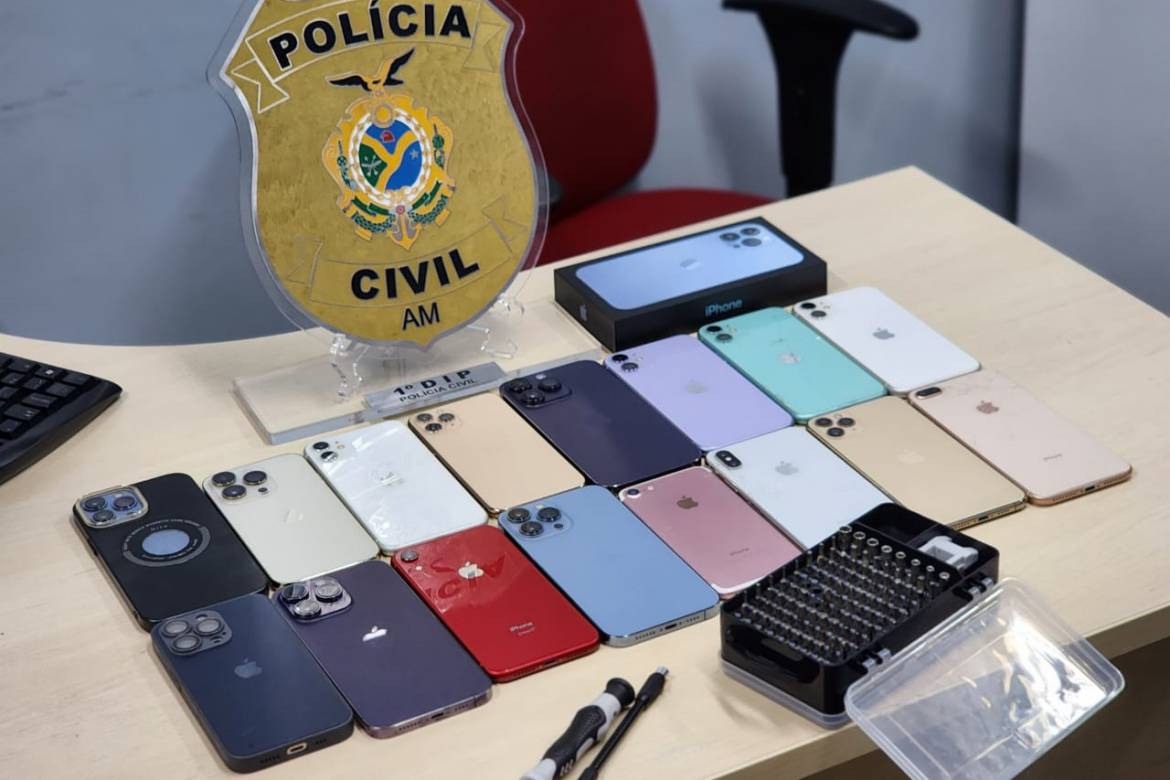 A Polícia Civil do Amazonas (PC-AM), por meio do 1º Distrito Integrado de Polícia (DIP), prendeu em flagrante, na segunda-feira (06/11), Irlan Rodrigues dos Santos, 24, em posse de 16 aparelhos celulares que seriam oriundos de roubos e furtos. Ele era responsável por desbloquear aparelhos celulares a mando de pessoas vinculadas ao crime organizado.