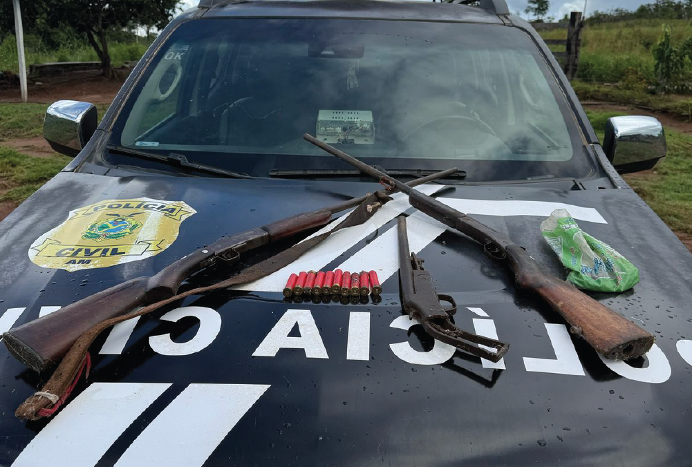 “Solicitamos à Justiça o mandado de busca e apreensão, e assim que foi deferido, realizamos diligências ao distrito de Sucuduri, com o apoio da PMAM. No local, foram encontradas três espingardas e munições de arma de fogo em posse de Donizete”, disse.