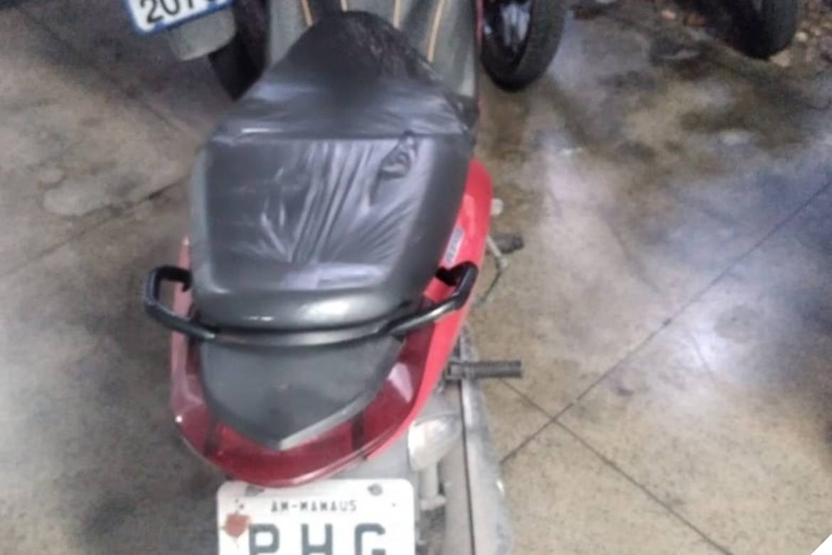 O veículo modelo Yamaha Fazer, de cor preta, placa PHI 8162, roubado na Comunidade Fazendinha, foi localizado na avenida Margarita, bairro Nova Cidade.