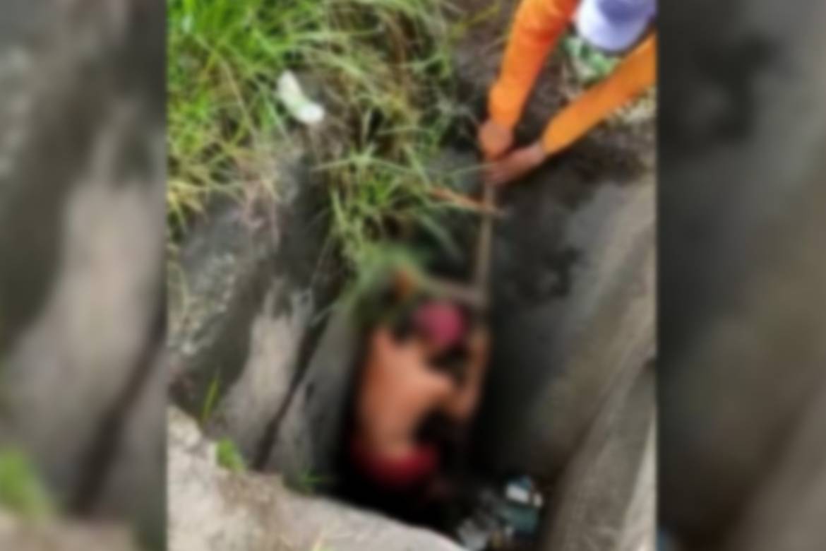 O idoso apresentava sinais de desorientação e desidratação, sem saber ao certo há quantos dias estava preso no bueiro.
