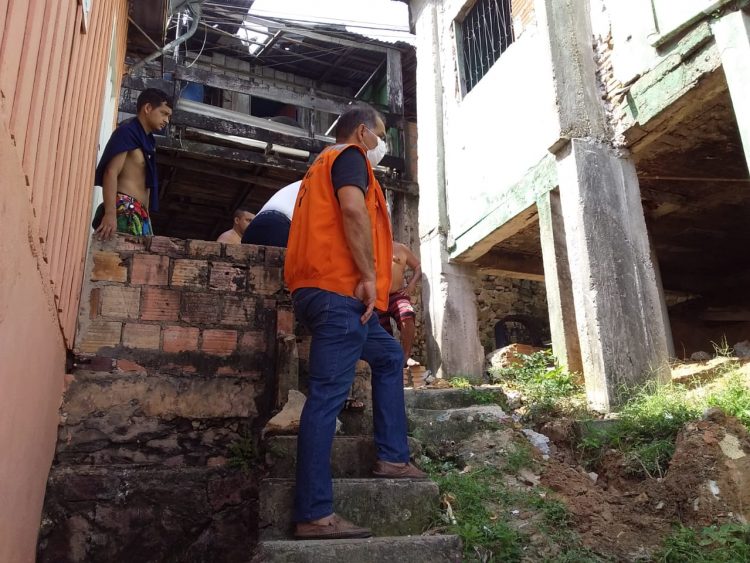 Uma residência de três andares localizada na rua Inocêncio de Araújo, bairro Educandos na Zona Sul de Manaus, apresenta risco de desabar, a defesa civil já está no local avaliando estrutura do local.
