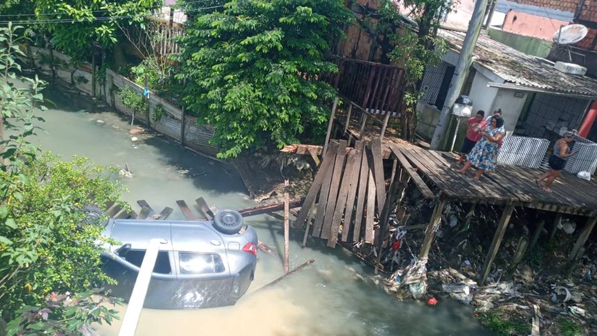 Um carro caiu no Igarapé da Cachoeira Grande, no bairro Nova Esperança, Zona Oeste de Manaus, neste domingo (2). Segundo moradores, o motorista tentava atravessar uma ponte de madeira, quando o acidente aconteceu. Não há informações sobre o estado de saúde dele.