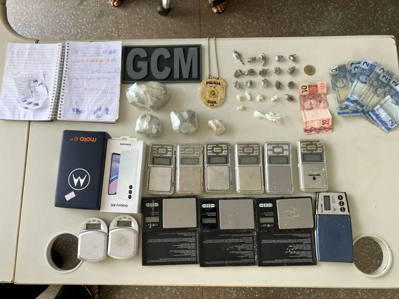 “Iniciamos as diligências e confirmamos que se tratava de Alessandra Gama Gonzaga. Ela já possui antecedentes por tráfico de drogas e associação para o tráfico. Com ela, apreendemos 26 trouxinhas de entorpecentes, uma porção média de cocaína, três porções de skunk, 12 balanças de precisão, dois aparelhos celulares, um caderno de anotações e R$ 32 em espécie”, informaram.
