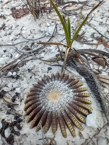Uma coroa que emerge do solo de areia quartzítica, apresentando uma flor amarelada no centro, que lembra um desenho infantil de sol, com um miolo rodeado de riscos radiais. Trata-se de um cacto subterrâneo e sem espinhos que cabe na palma da mão: o Uebelmannia nuda, exclusivo do Parque Nacional das Sempre-Vivas, na serra do Espinhaço (MG). O gênero Uebelmannia tem quatro espécies, uma das quais coexiste com U. nuda; todas são muito espinhudas e possuem caules aparentes acima do solo, o que destaca o novo achado.