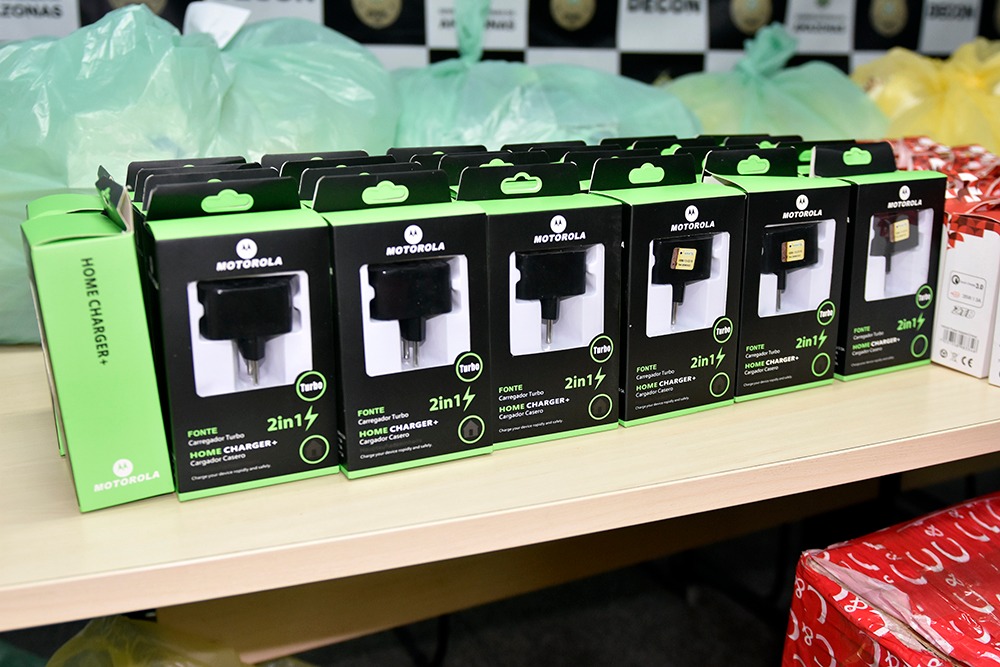 Mais de 3,2 mil produtos falsificados foram apreendidos no Centro de Manaus, nesta quinta-feira (13/02), durante a Operação Fruto Proibido. A ação policial teve como objetivo tirar de circulação produtos falsificados das marcas Apple e Motorola, vendidos em Manaus.