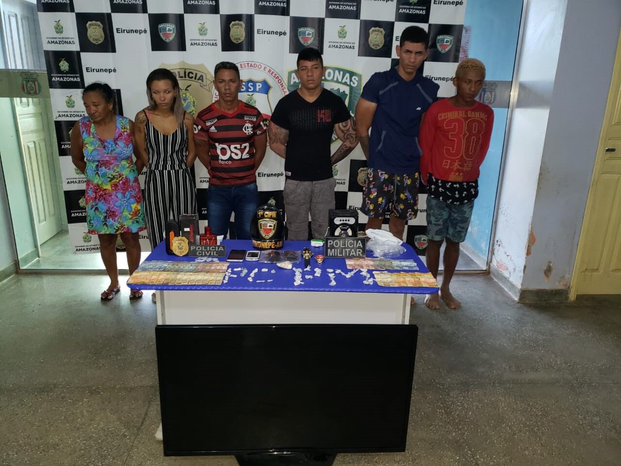 De acordo com o gestor da unidade policial, a operação contou com apoio de policiais militares e de guardas civis do município de Eirunepé. Segundo Gonzaga Júnior, as equipes policiais realizavam o cumprimento do mandado de busca e apreensão em endereços diferentes, quando se depararam com a materialidade dos delitos. Na ocasião, foram presos em flagrante: Adenilson Lúcio de Lima, 22; Alfonso Lucio da Silva Rocha, 23; Gilvan de Souza Magalhães, 22; João Bosco Inácio de Freitas, 24; Raimunda Nonata Inácio Freitas, 24, e William Souza da Silva, 19.