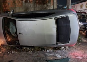 Criminoso fica preso às ferragens de carro após capotar durante perseguição policial em Manaus