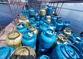 Agentes da Base Arpão, da Secretaria de Segurança Pública (SSP-AM), apreenderam 270 botijas de gás e sete mil litros de ...