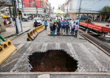 A equipe de pronta-resposta da Prefeitura de Manaus dá continuidade às ações emergenciais na avenida 7 de Setembro, Centro, onde, ...