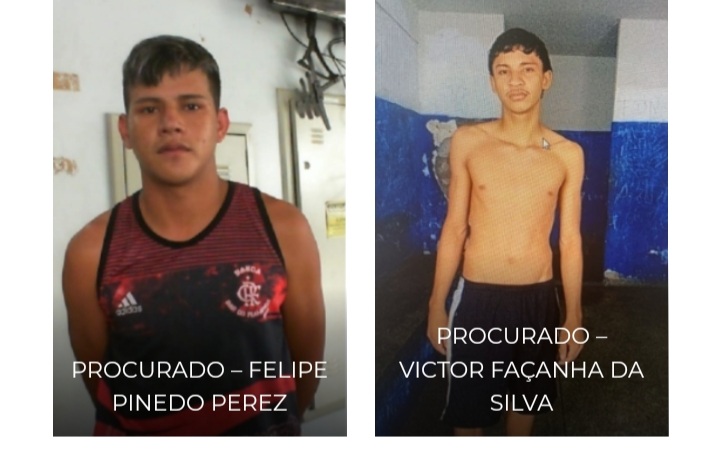 A Polícia Civil do Amazonas (PC-AM), por meio do 8º Distrito Integrado de Polícia (DIP), solicita divulgação na imagem de Felipe Pinedo Perez, 22, e Victor Façanha da Silva, 19, procurados por envolvimento no homicídio tentado de uma jovem de 19 anos, ocorrido no dia 23 de abril deste ano.