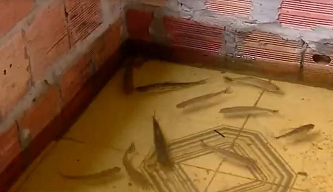 Além da casa alagada pela água, uma moradora de Manaus teve de lidar com outro problema causado pela cheia do Rio Negro. A cozinha da residência da autônoma Tatiane Baraúna foi tomada por peixes trazidos pela correnteza do rio.