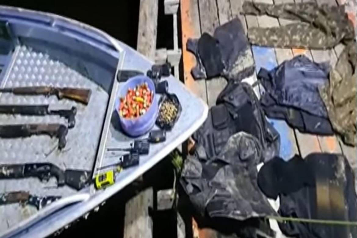 Na embarcação deles, os policiais encontraram escopetas, espingardas, coletes à prova de balas, rádios comunicadores, munições, inclusive de fuzil, e até roupas do exército.