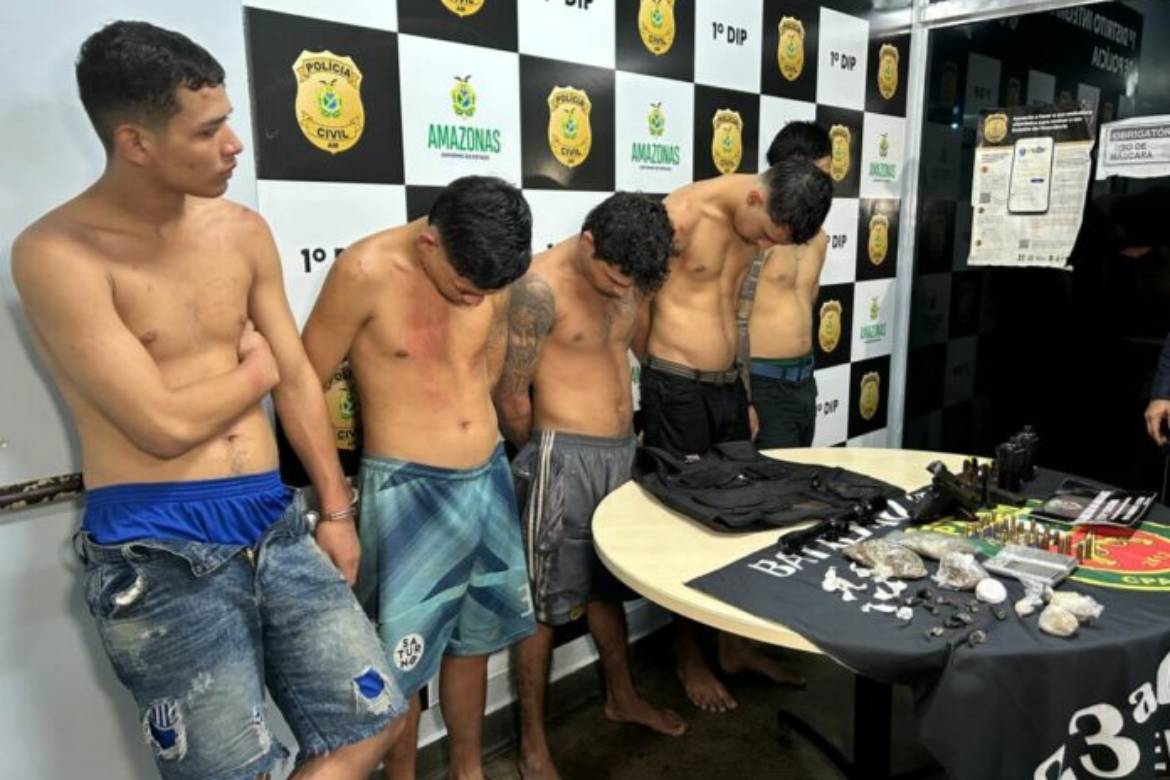 Carlos Eduardo Viana Limeira, de 20 anos; Samuel Chagas de Matos, 19 anos; Leonardo Xavier Moraes, 22, André Luís Tavares Queiroz, 22, todos membros de facção criminosa, foram presos por tráfico de drogas na noite desta quarta-feira (03/04), e chegaram a trocar tiros com a Polícia na comunidade da União, bairro Parque 10 de Novembro, zona Centro-Sul de Manaus. Entre eles estava Ryan Christian Barbosa da Costa, de 19 anos, investigado pelo assassinato de um integrante de facção rival no último fim de semana.