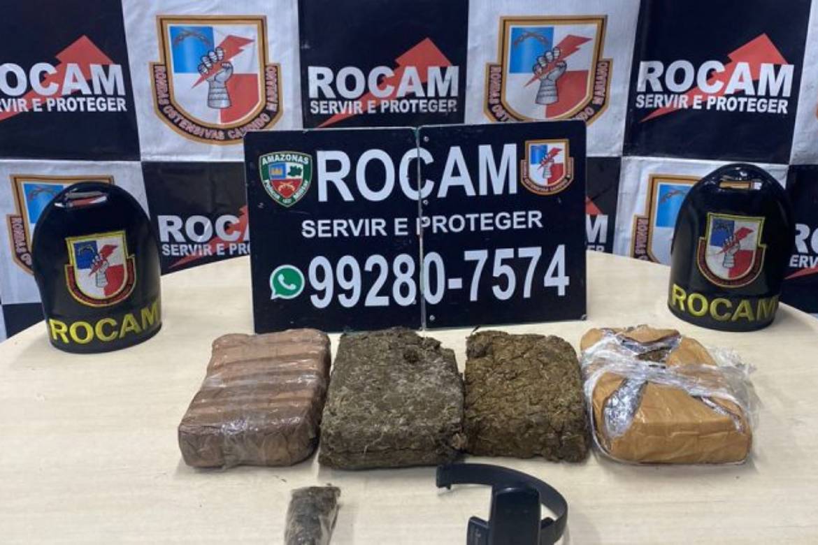 Um homem de 23 anos foi preso com quatro tabletes de maconha e mais uma porção média da mesma substância, na rua Carauari, bairro redenção, zona Centro-Oeste de Manaus. Ele já tem passagens pelos crimes de tráfico de drogas e roubo.