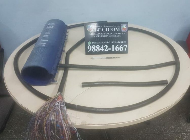 Policiais militares da 14ª Companhia Interativa Comunitária (Cicom) detiveram, na manhã desta sexta-feira (27/03), dois homens, de 55 e 36 anos, suspeitos de furto de cabeamento da rede telefônica de postes na rua Jutaí, bairro Jorge Teixeira, zona leste da capital amazonense.