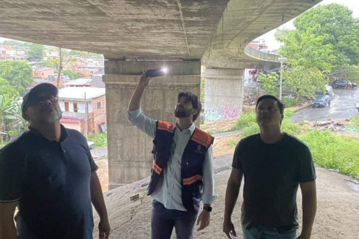 A visita técnica e análise objetiva visual de estruturas com base nos termos da norma do Departamento Nacional de Infraestrutura de Transportes (Dnit), foi realizada pelo subsecretário municipal de Obras Públicas, Madson Lino Rodrigues, em conjunto com o subsecretário municipal de Serviços Básicos da Seminf, Efrain Aragão; o superintendente da Seminf, Italo Oliveira; e o professor doutor em Engenharia de Cálculo, Francisco Anastácio Cantizani.