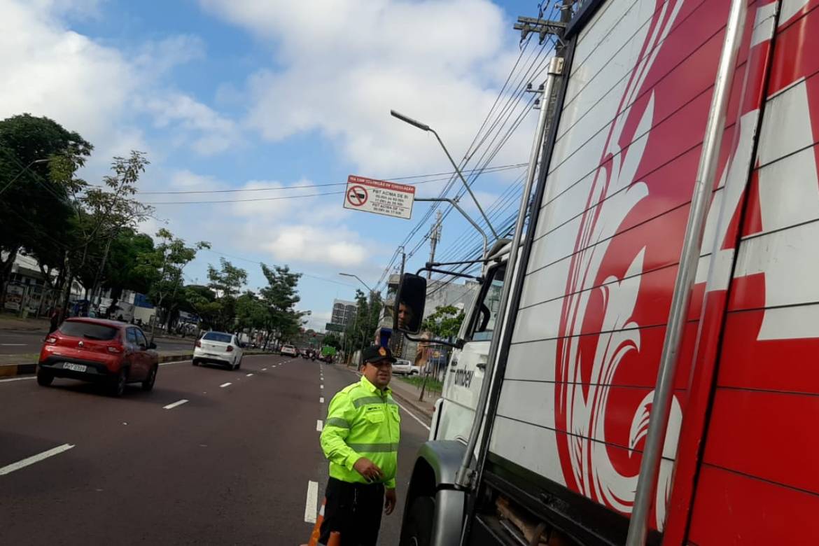 Prefeitura fiscaliza veículos de grande porte na avenida Djalma Batista, em Manaus